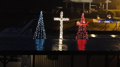 A lock on the Tombigbee Waterway before we arrived in the evening at the Midway Marina, directed in by the Christmas lights.