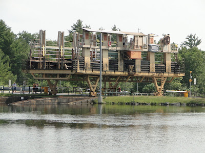 Up over the roadway, then on the way down, down into the water on the West side . . . next stop Port Severn and the Georgian Bay.